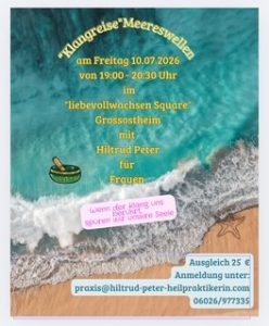 Eine Klangreise nur für Frauen, eine offene Reise, getragen und geleitet von meinen gesprochenen Worten in der Fantasiereise und den verschiedenen obertonreichen Instrumenten und Klangschalen.